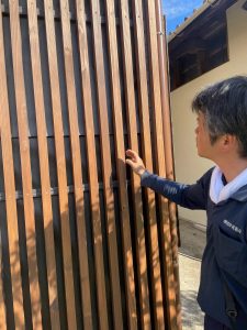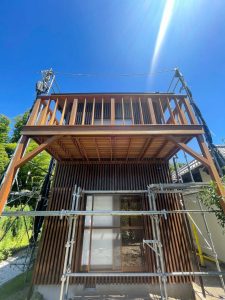 二階のアルミのベランダをセランガンバツのウッドデッキに交換。
