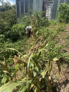 今日は、ポップコーン用トウモロコシの収穫と伐採を終え、秋冬に向けて畑の整備に取りかかります。