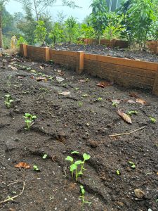 畑はしっとりと潤い、先週まいた種たちが可愛く発芽していました。