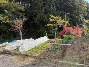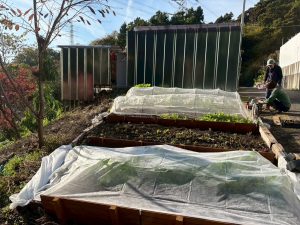 冷え込みが心配になってきたので、ホウレン草と大根の畝に不織布のお布団をかけておいたところ、そのおかげか、生育もいい感じです😊