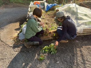 その後は、収穫を終えた唐辛子のお片付け。枝や葉をきれいに分けて、ココハウスのみんなへお届けします😊