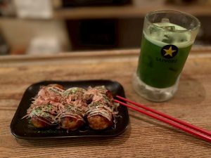 たこ焼き 450円 お 酒もお茶も濃い~緑茶割 380円