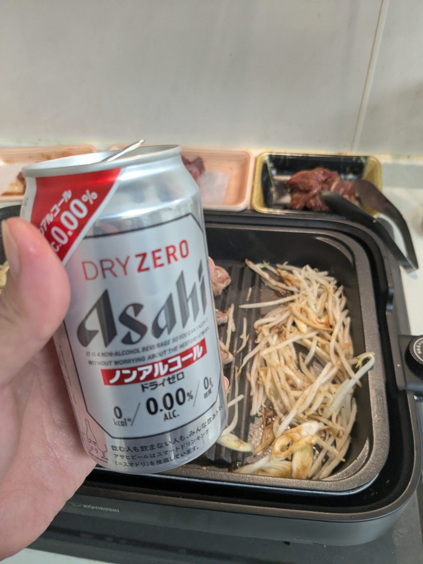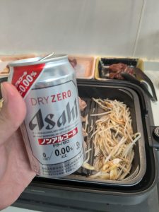 テーブルでやると家中臭いがするので、換気扇の下にホットプレート。