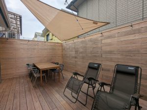庭は全面ウッドデッキになっており、こんなに庭広かったっけ?と驚き!!