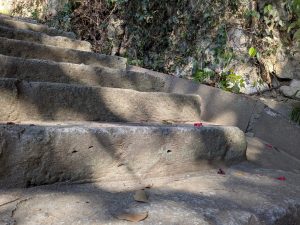 車は入りません。石の階段を登ります。