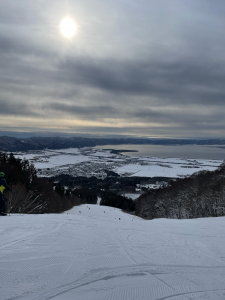 山の上に行ったら、猪苗代に行って初めて視界が開けたのでスキー場からは綺麗に猪苗代湖が望めました。