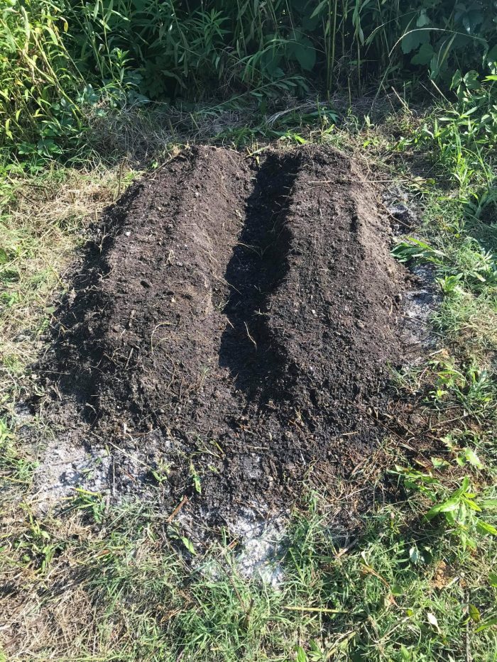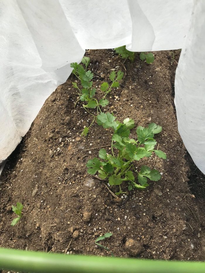 まるでミイラのように、藁を纏ったモロヘイヤの畝