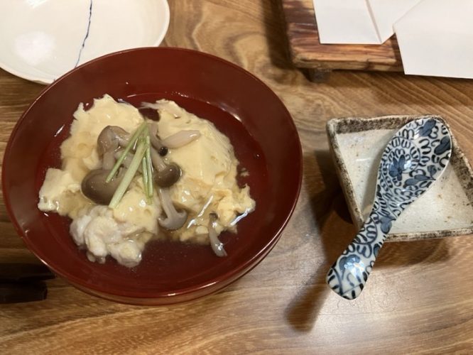 お料理の説明がありましたが、お猪口に入ったスープと、お刺身のことで