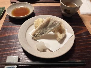 天ぷら(焼きとは違う美味しいお魚と、蓮根、薩摩芋、カリフラワー)