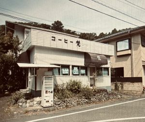 喫茶店 梵 の看板が、日暮れと郷愁を誘います