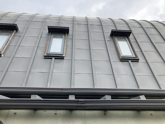 合金メッキ鋼板(ガルバニウム?)葺き部分など
