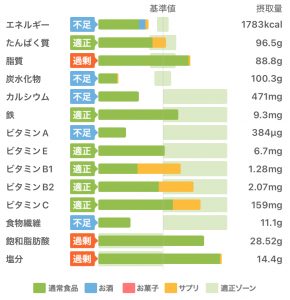 年が明けて8日も経った本日、ようやくそれらしい数字になってきましたが、それでも多い飽和脂肪酸と塩分。
