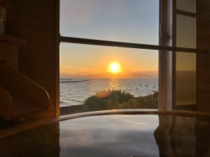 お部屋のお風呂から海に沈む夕日を見ながら、ゆっくり過ごさせて頂きました。極楽。