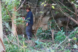 スタッフの方も蜘蛛の巣と生い茂る草と格闘しながら測量