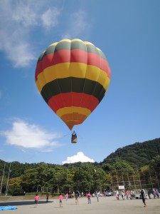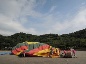 朝、7時半に集合し準備、9時から気球の試し上げを2回行うも、