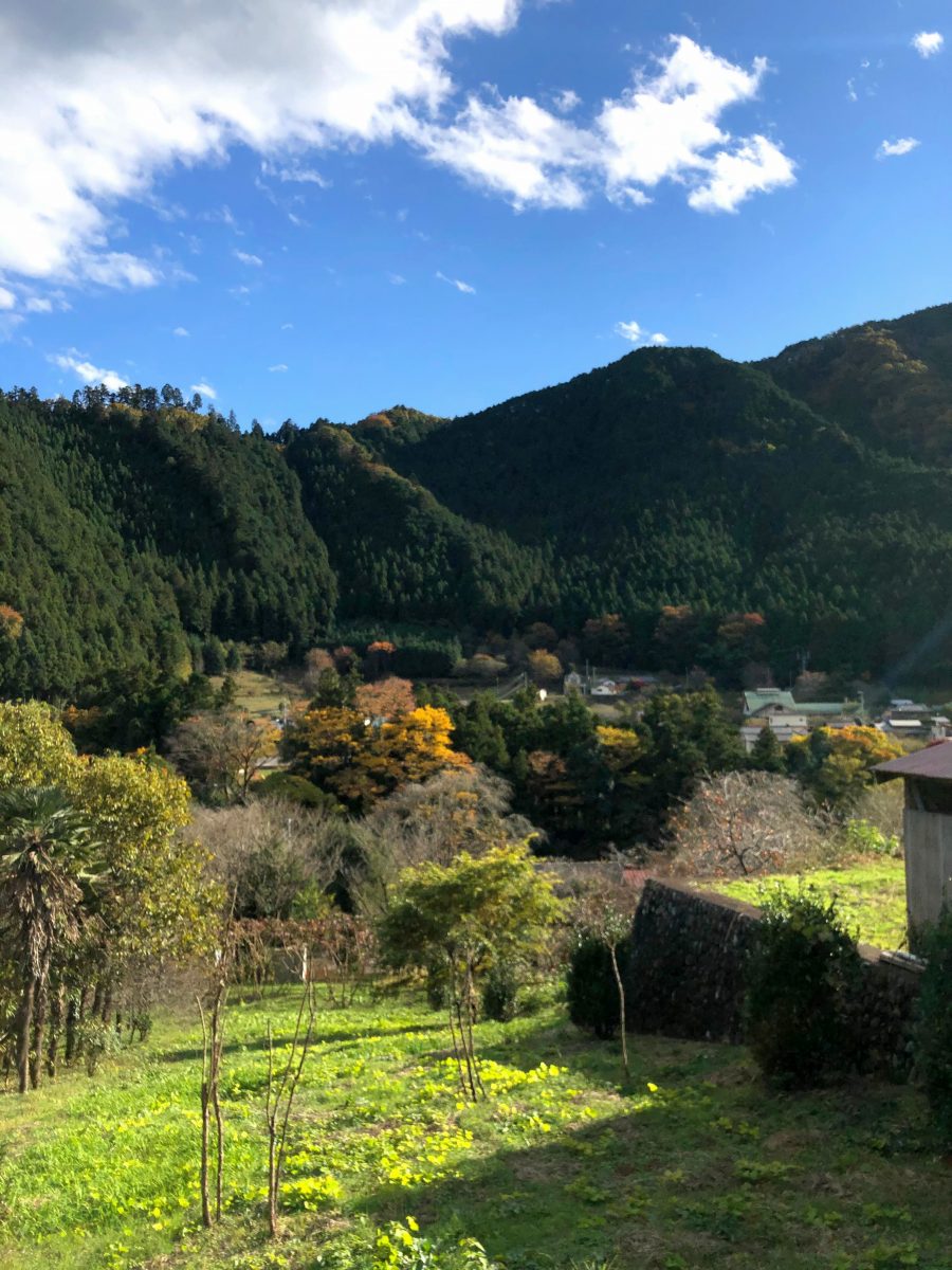 日本家屋と紅葉と山々の緑で癒されます。