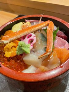 おまかせ握りと海鮮丼に天ぷら盛り合わせを注文。