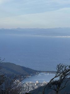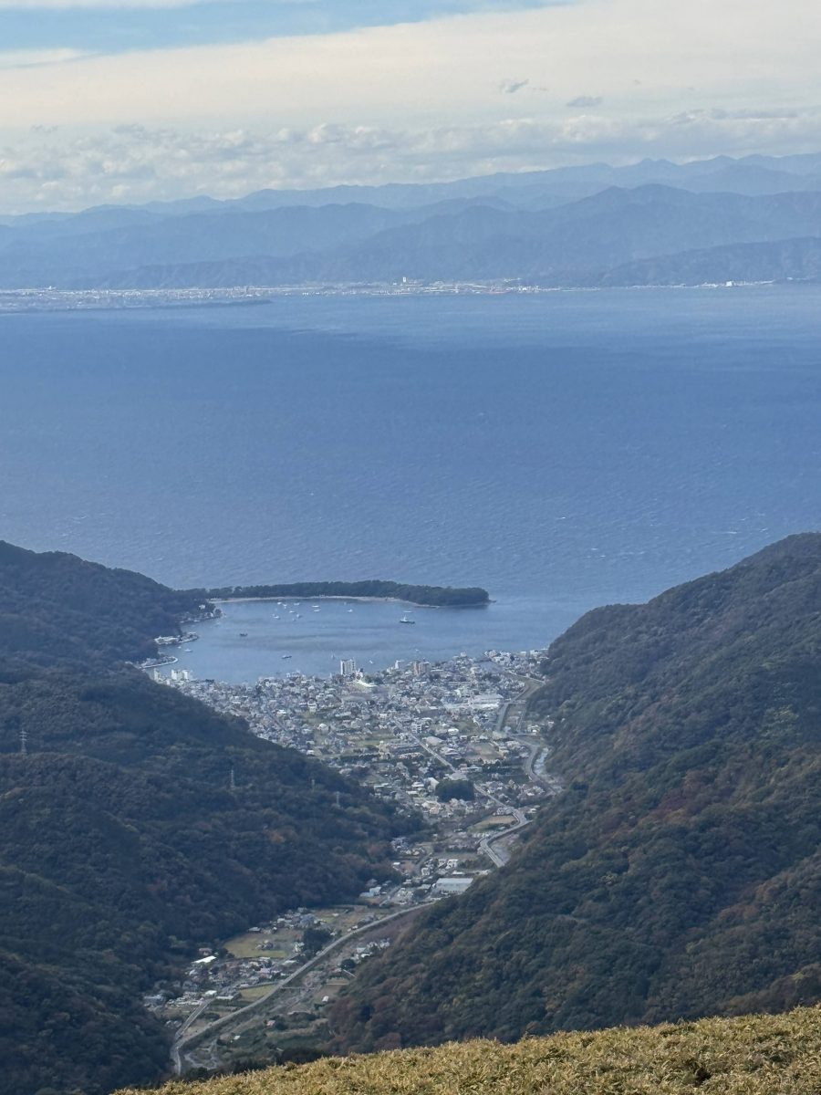 眼下に戸田湾、稜線伝いの熊笹に覆われたコース。