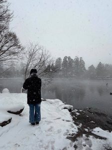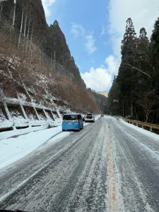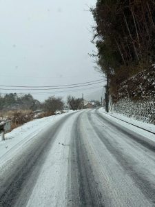 翌朝、目覚めると駐車場の路面はアイスバーン。