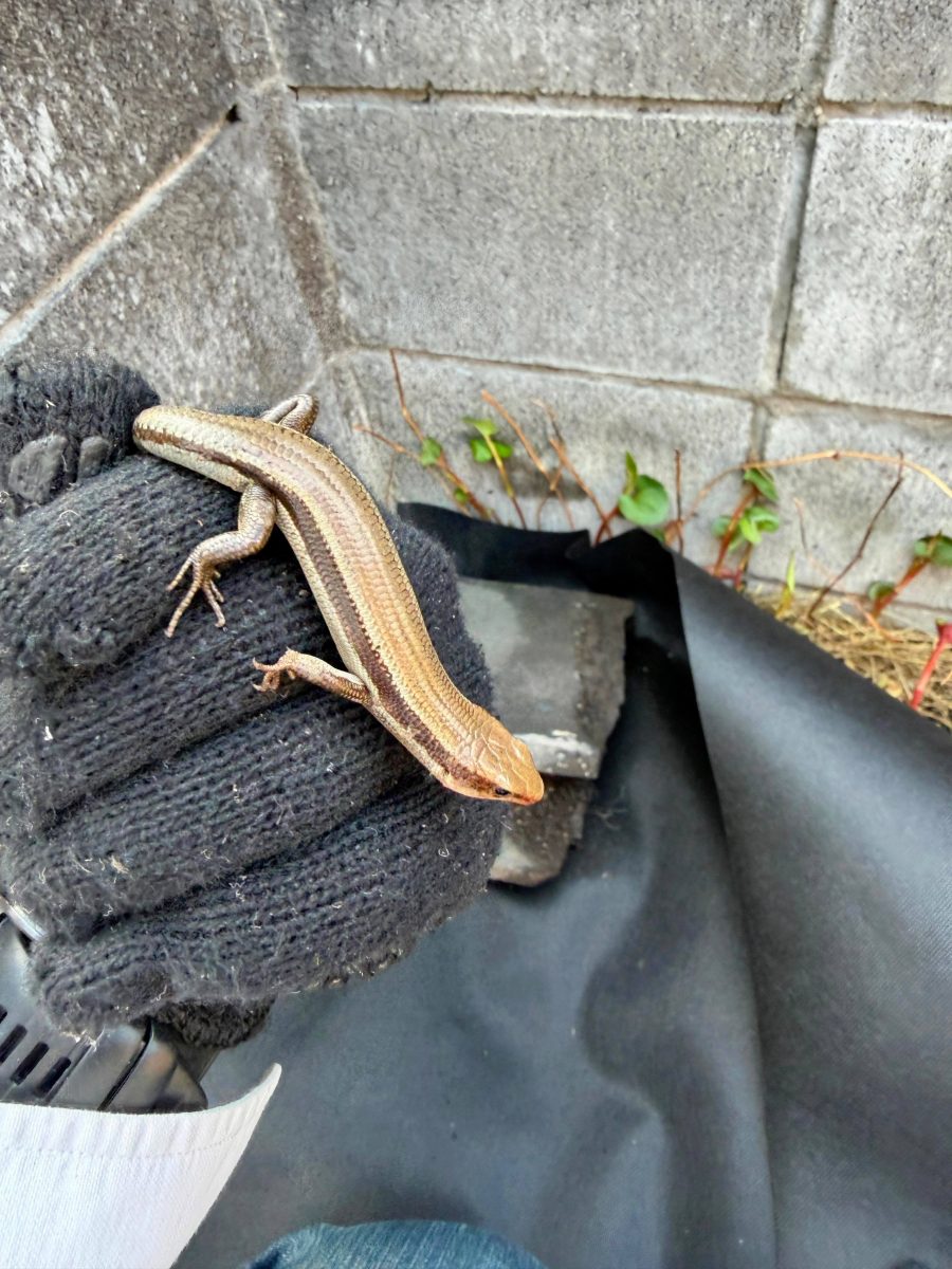 石を捲ると、カナヘビ君がニョロっと。