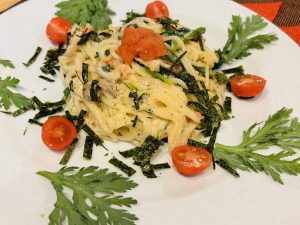 今日は明太子のパスタにしました!