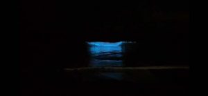 夜の海、波が青く光って自然のイルミネーションがみれました~!
