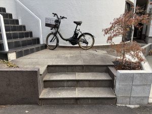 電動チャリ重いし前後が短いから。3段の階段を上げるのがちょっと大変なんです。