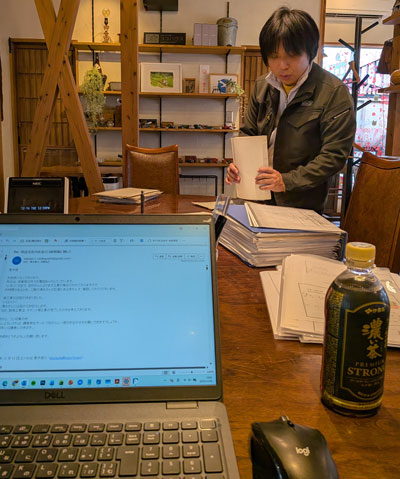 現在依頼している物件の図面を取りに来店。
