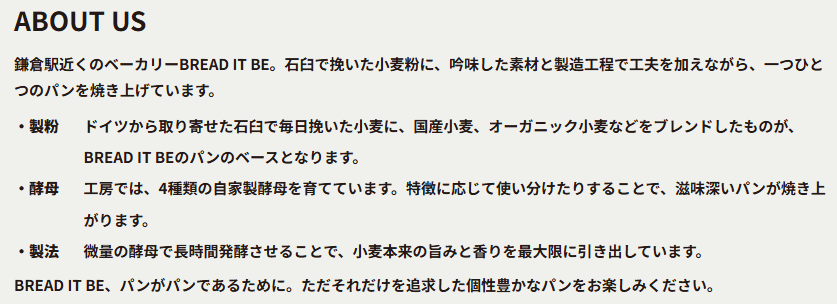 「パンがパンであるために。ただそれだけを追求した個性豊かなパンをお楽しみください。」