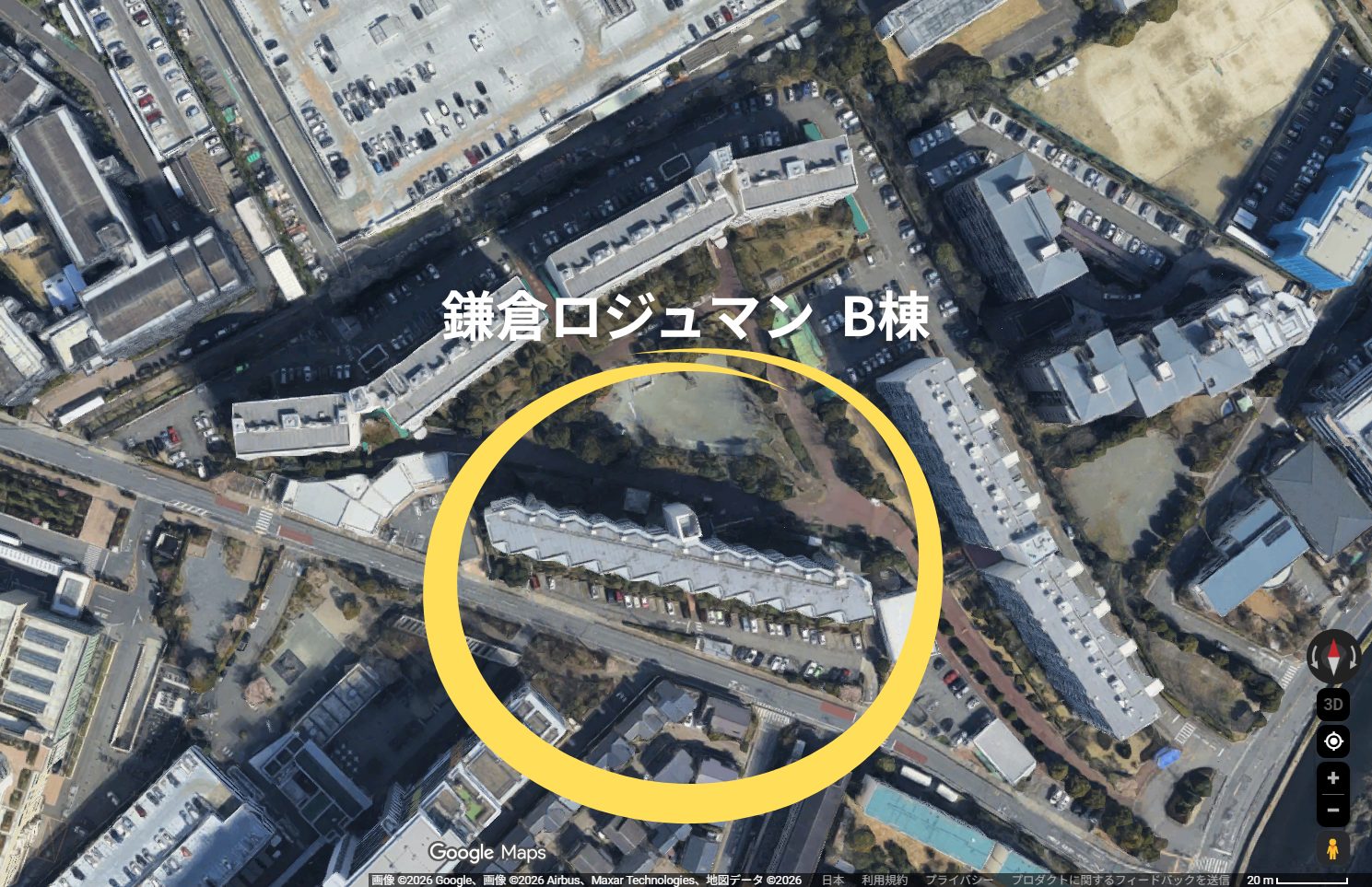 Googleマップの航空写真で上から見ると一目瞭然。