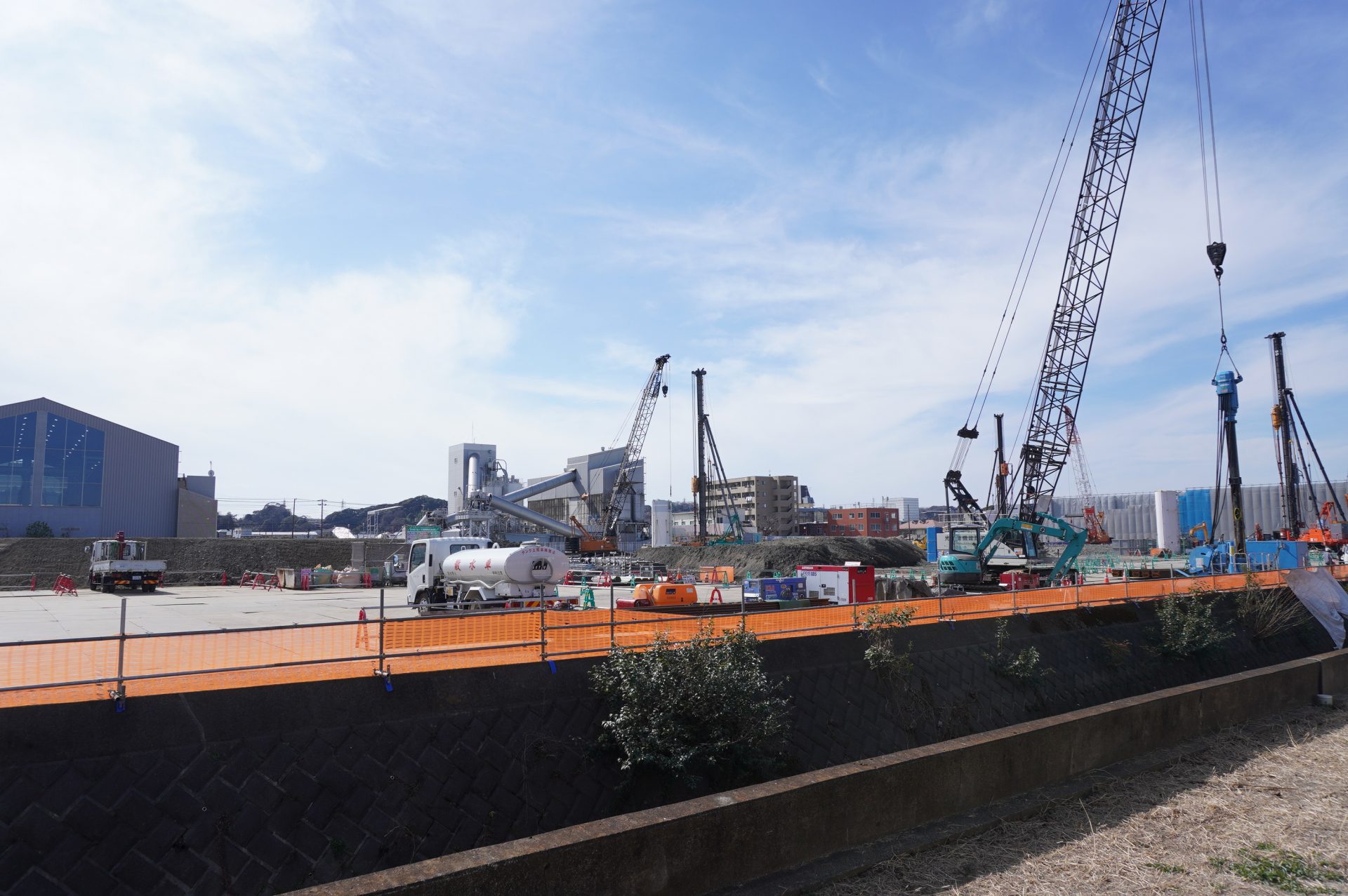 ホームセンターとスーパーの建設がかなり進んでいて、工事は今年7月まで。
