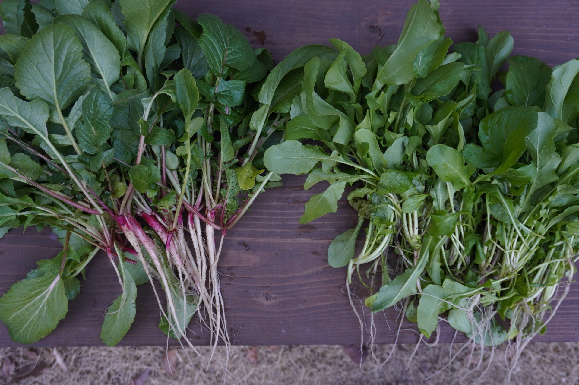 育ちきれなかった左の大根、葉っぱが肉厚でめちゃくちゃ美味しかったです!