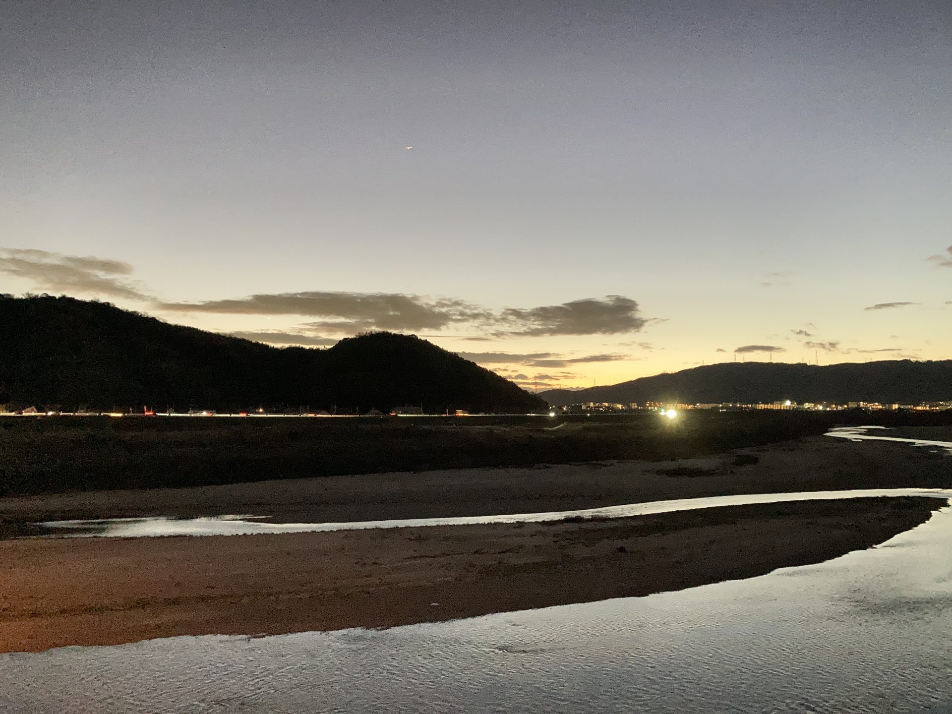 桂川、宇治川、木津川が合流する