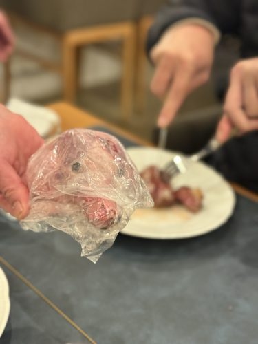 ほぼ脂身らしいですが、融点が低く残らないようですね、胃の中の悪玉的な物も落としてくれるとの事、ほぼ乳酸菌とシロタ株の無いヤクルトと一緒ですねとシェフに行った所、大すべり、僕はおもろいと思っています。