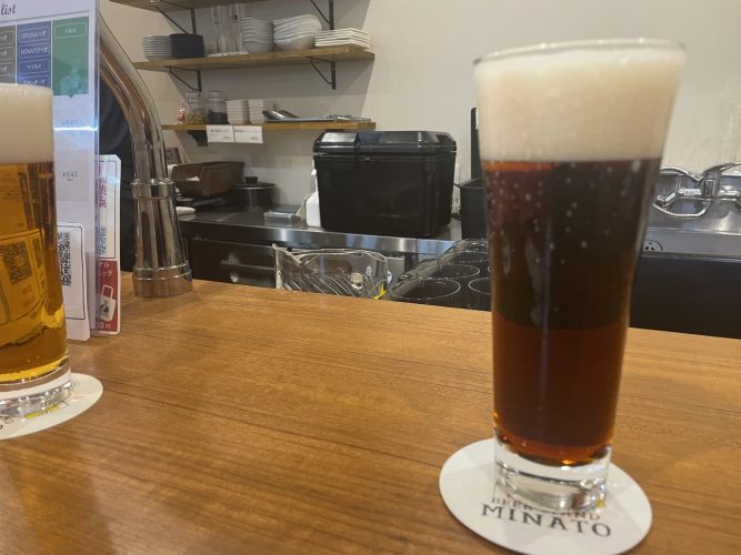 1軒目の前に、1杯だけのつもりで再訪問のビールスタンドMINATOさん、