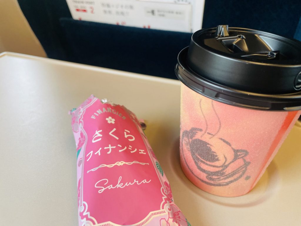 食後にカルディのフィナンシェと新幹線コーヒー