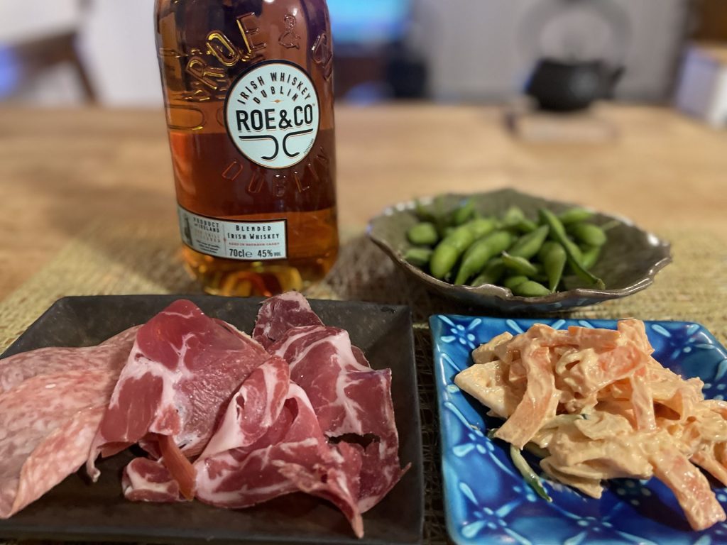 そんな今夜は、昨日の残り物と、冷蔵庫にあったちょっといい生ハム回戦。
