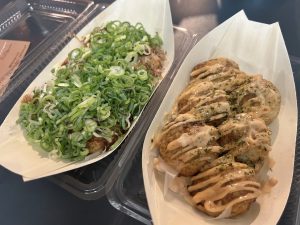 まずは定番のソースマヨ+ねぎトッピングと、明太マヨにしました!