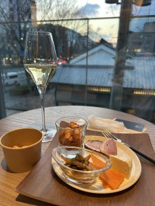 京都の街に沈む夕陽を眺めつつ、ホテルのラウンジでチルタイム〜