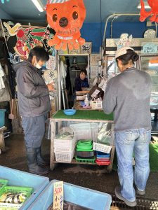 真面目に調査した後は、八木田さん御用達の魚屋さんへ〜