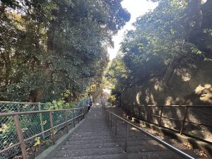 隣地は市が所有する緑地と階段になっており、なかなか風情のある散歩道です。車も行き止まりなのでとっても静か。