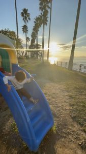 子供は広ーいグラウンドで走り回り、大人はかくれんぼの合間に海に沈むサンセットを眺められます。