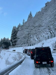 ゲレンデまでの登りでスタック渋滞、、