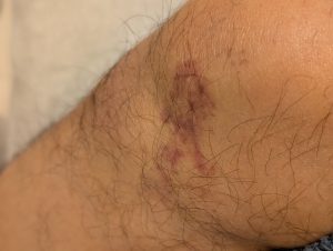 限界まで体を傾け、膝を強打w