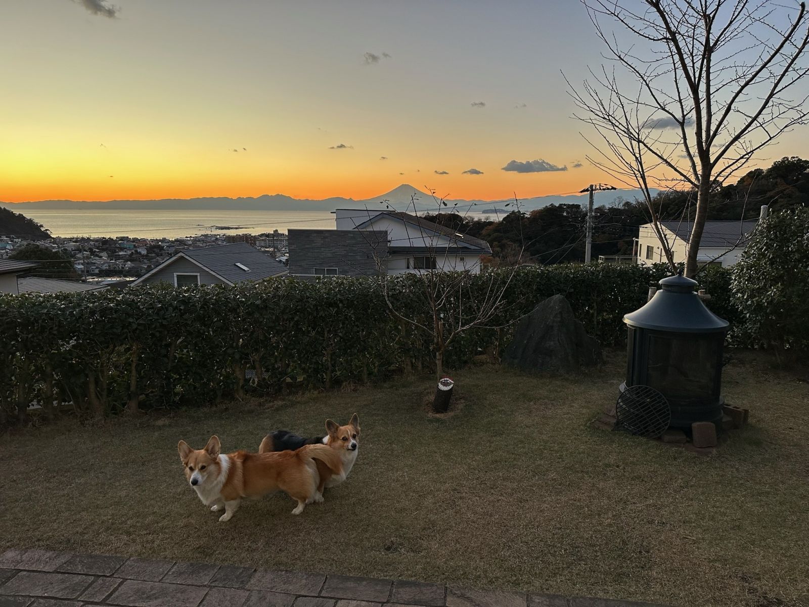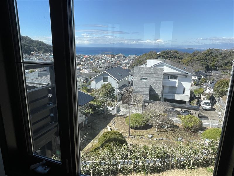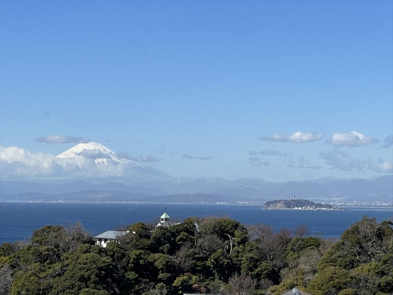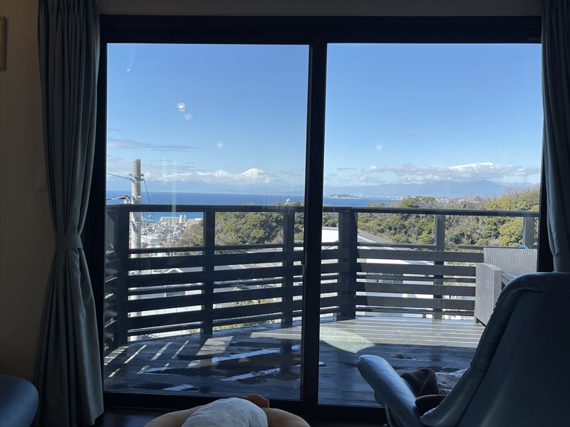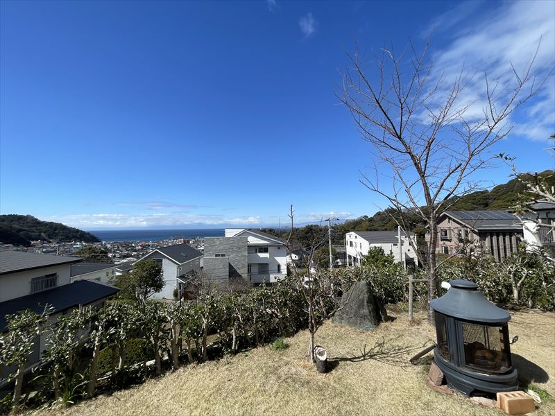 お庭・1階レベルからこのように海・富士・伊豆半島・江の島・名島を望みます。