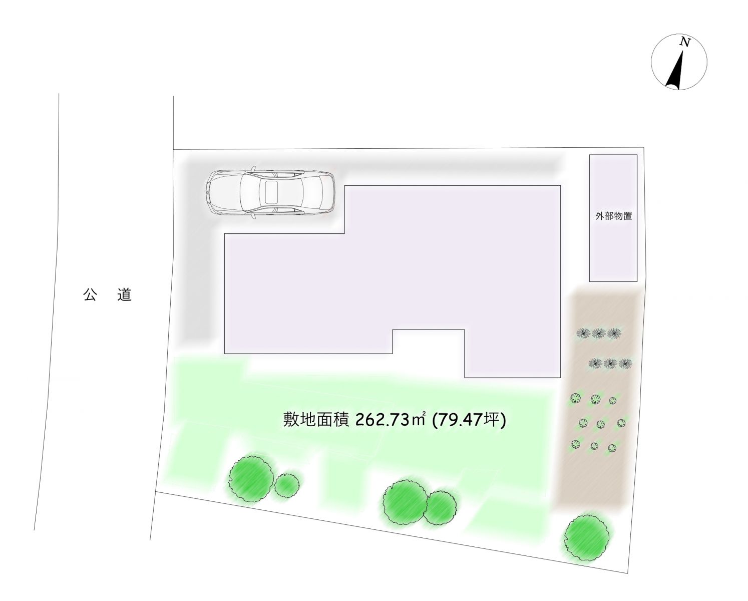 | 土地面積 | 262.74㎡(79.47坪) | 建物面積 | 102.68㎡ |