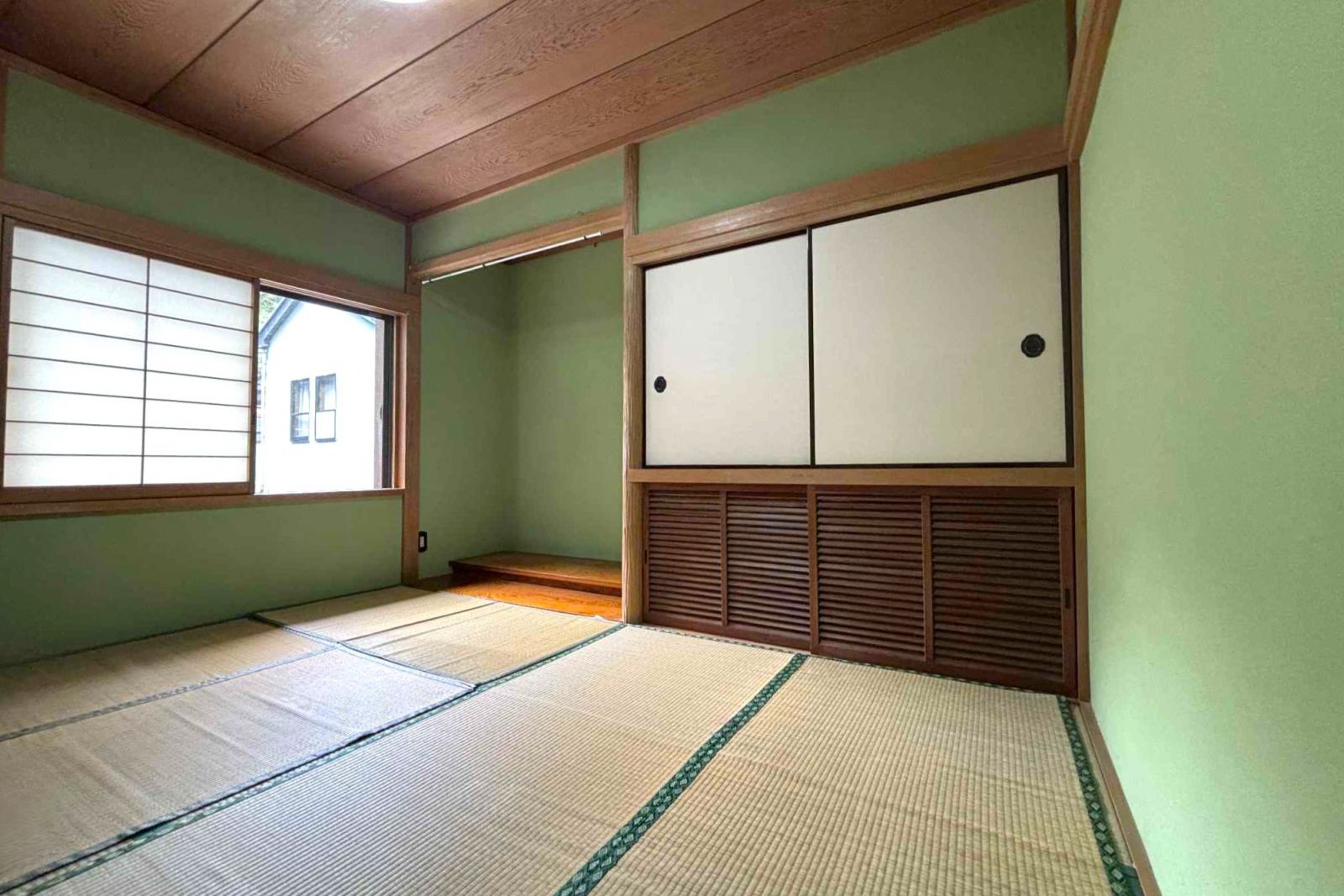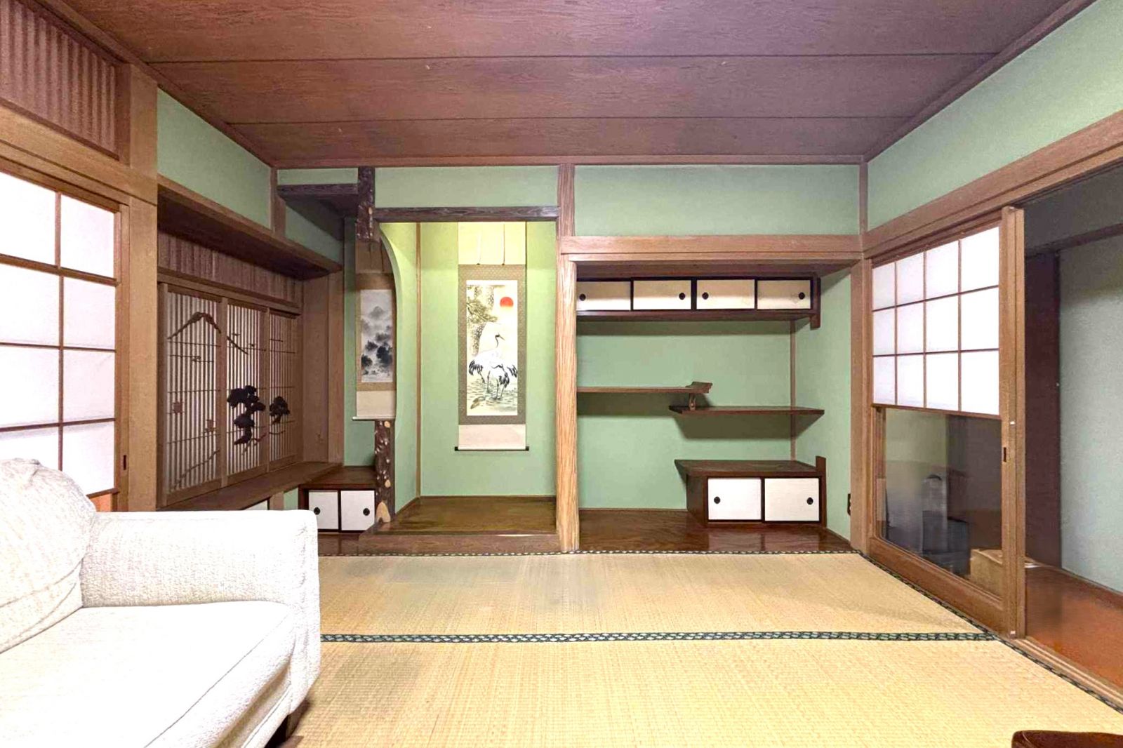 1階の和室と同じきれいな鶯色の壁、床の間もございます。