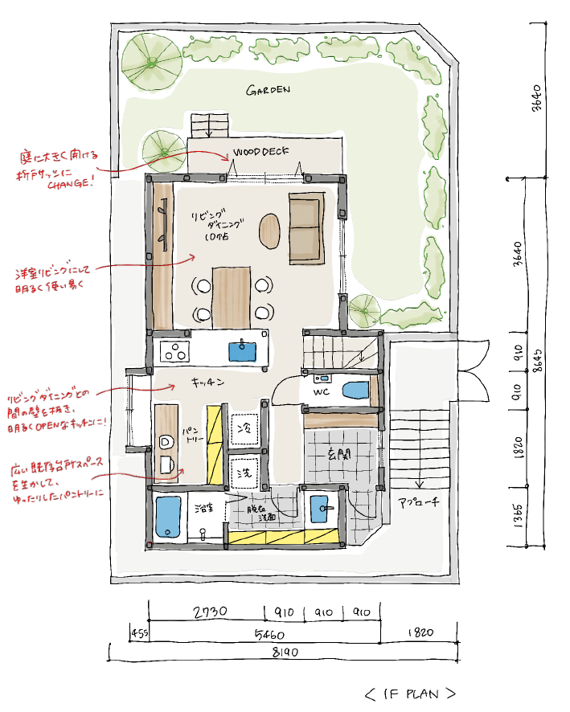 そして大きなウッドデッキをつけてお庭を楽しむ。