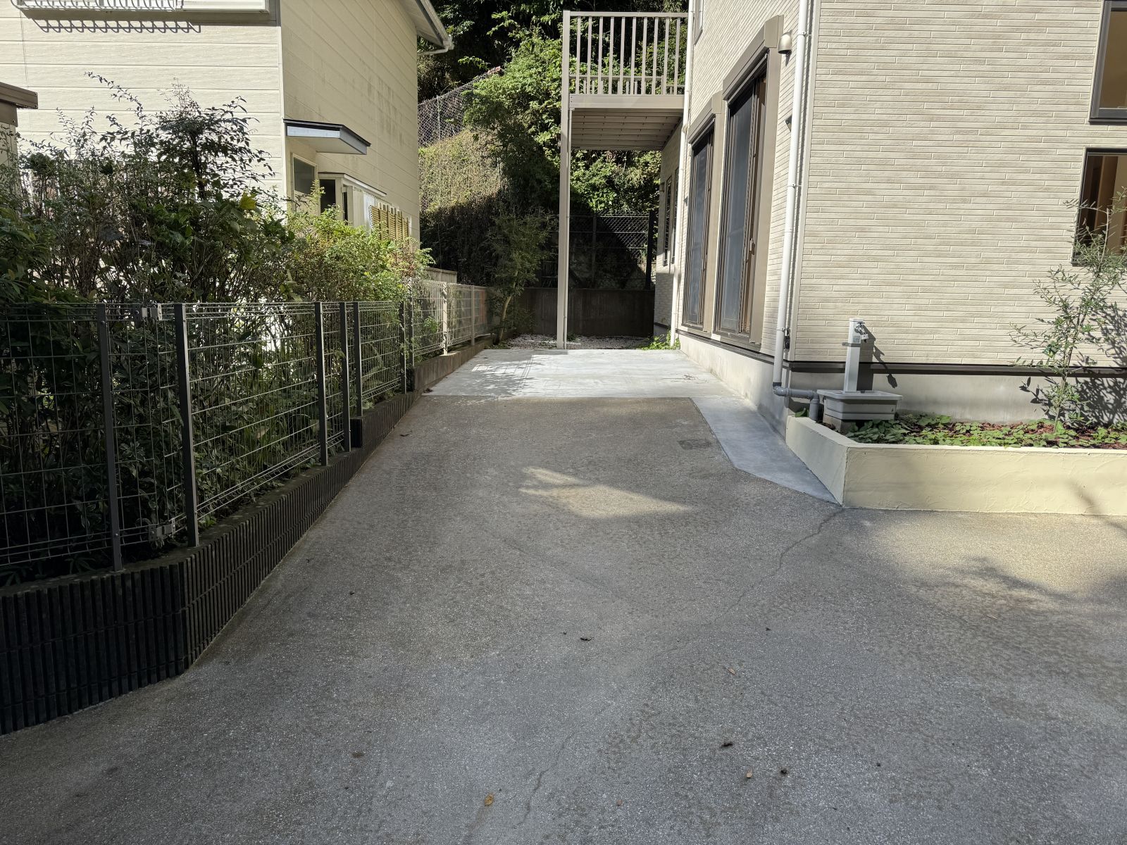 横を向くと、「薪を割りたくなる様な」バルコニー下のスペース