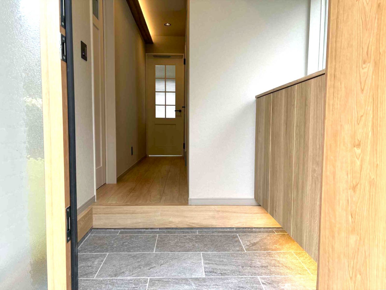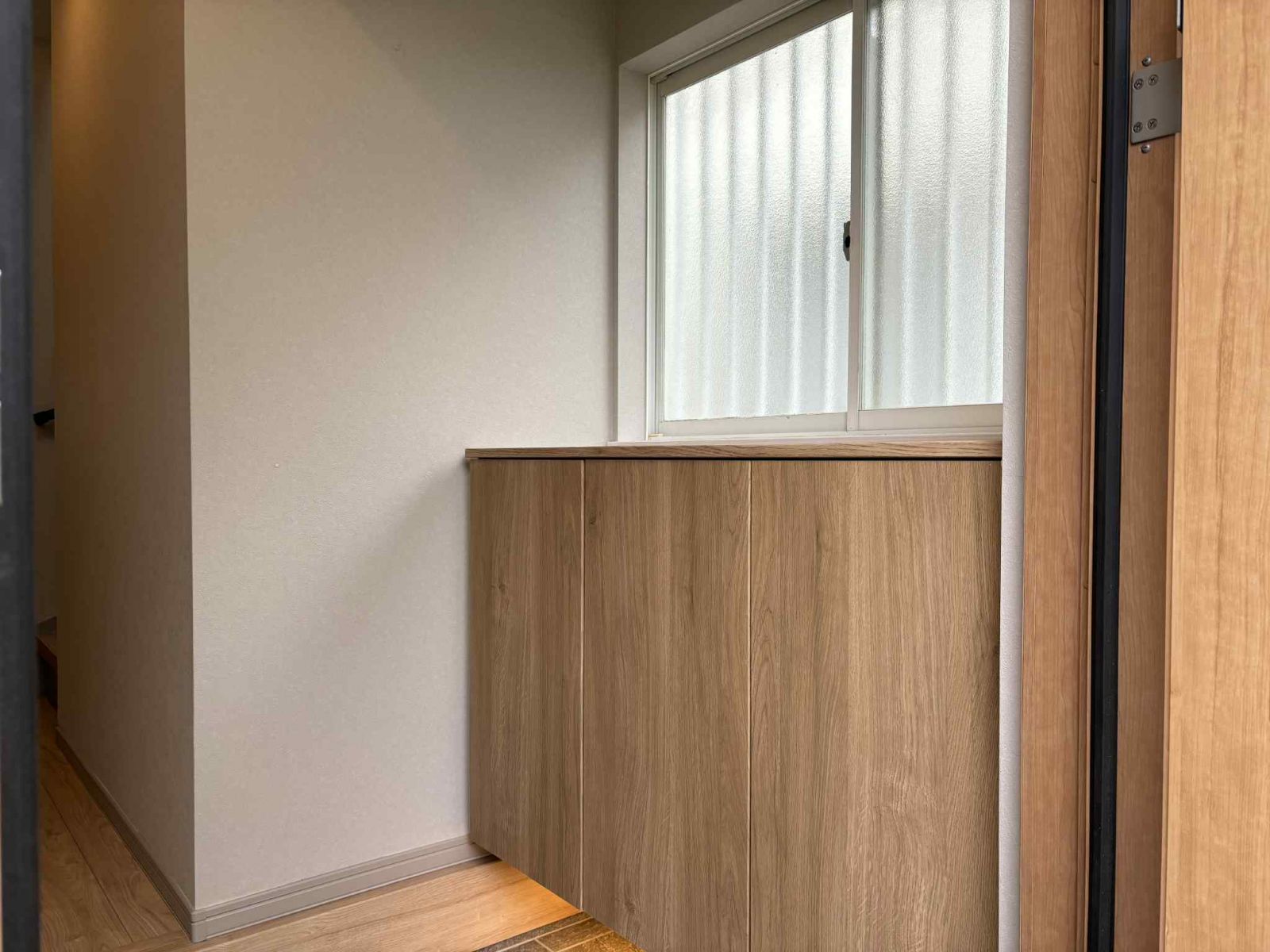 シューズボックスの上に大きめの窓。玄関はいつでも明るくなりますね!換気もバッチリ!